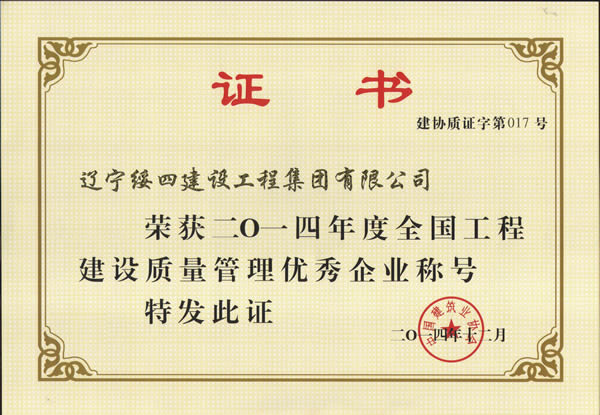 全國工程建設(shè)質(zhì)量管理優(yōu)秀企業(yè)稱號(hào)